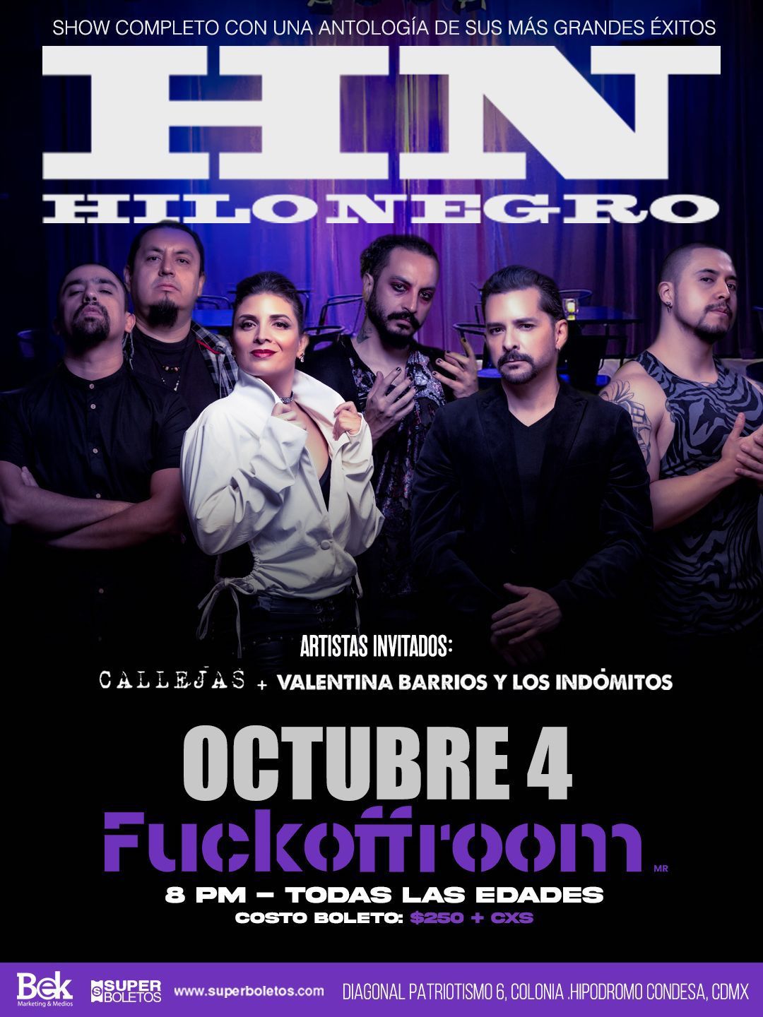 Con letras profundas y un sonido que fusiona estilos alternativos y poéticos, HILO NEGRO ha destacado en la escena musical mexicana, consolidándose como una banda de Rock que conecta con su audiencia a través de su autenticidad y pasión, con la voz y presencia hipnótica de Julieta Soto y músicos de muy alto nivel.